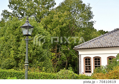古い洋館と街灯の写真素材